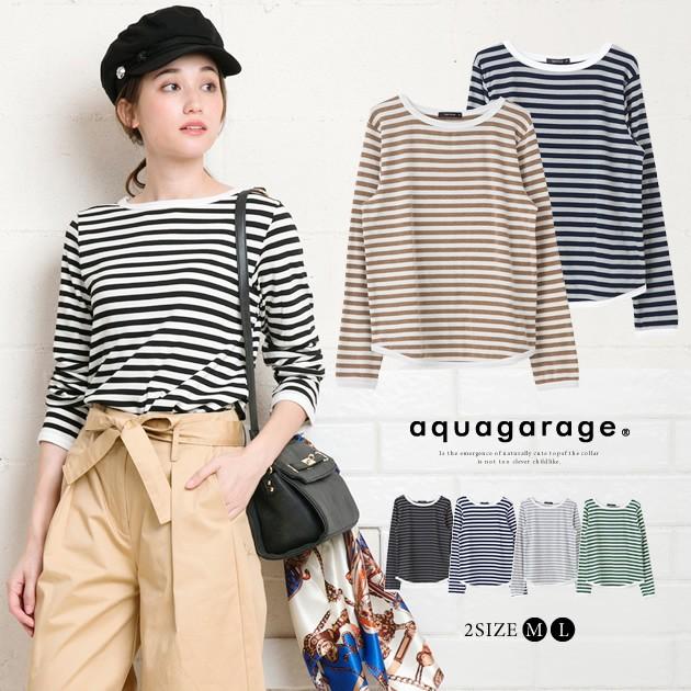 ボーダー Tシャツ 首詰まり トップス インナー ラウンド 秋冬 レディース 親子コーデ 長袖 ゆうメール便配送 代引不可 Aquagarage アクアガレージ 通販 Paypayモール